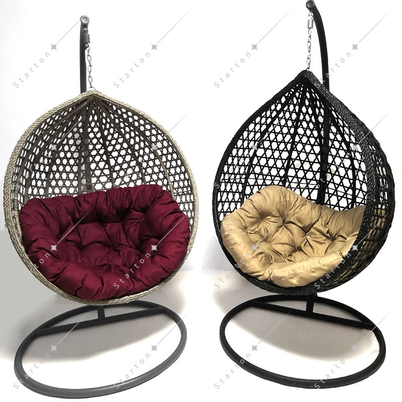 Rattan Swing Chair Hanging Patio Garden Outdoor Furniture Chair Double Seated Cushion