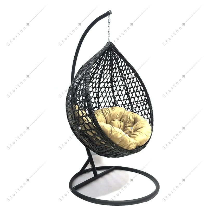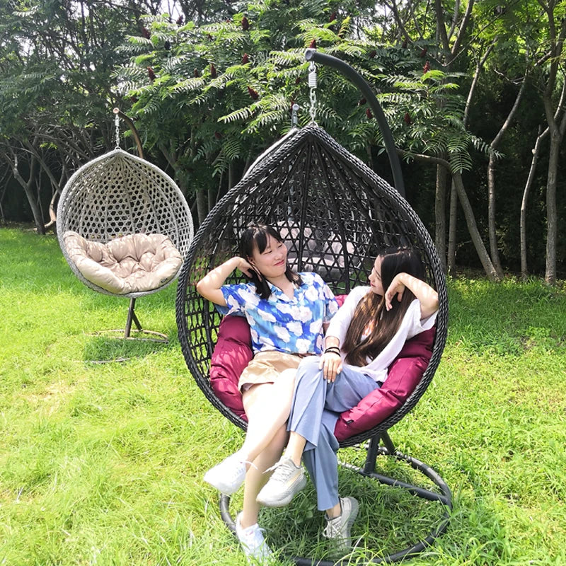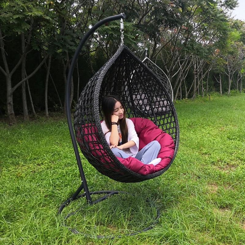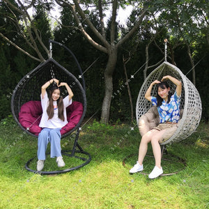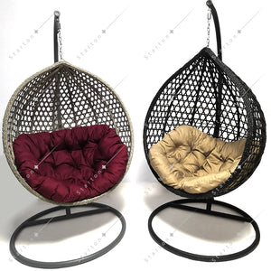 Our indoor swing features a sturdy frame paired with hand-woven rattan or high-quality synthetic wicker and a plush cushion for comfort — designed to be beautiful and long-lasting. Most indoor egg chair swings use durable materials that support everyday lounging.