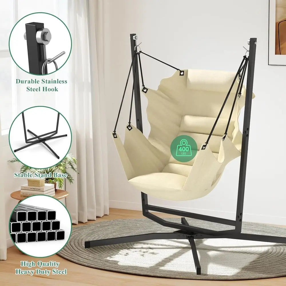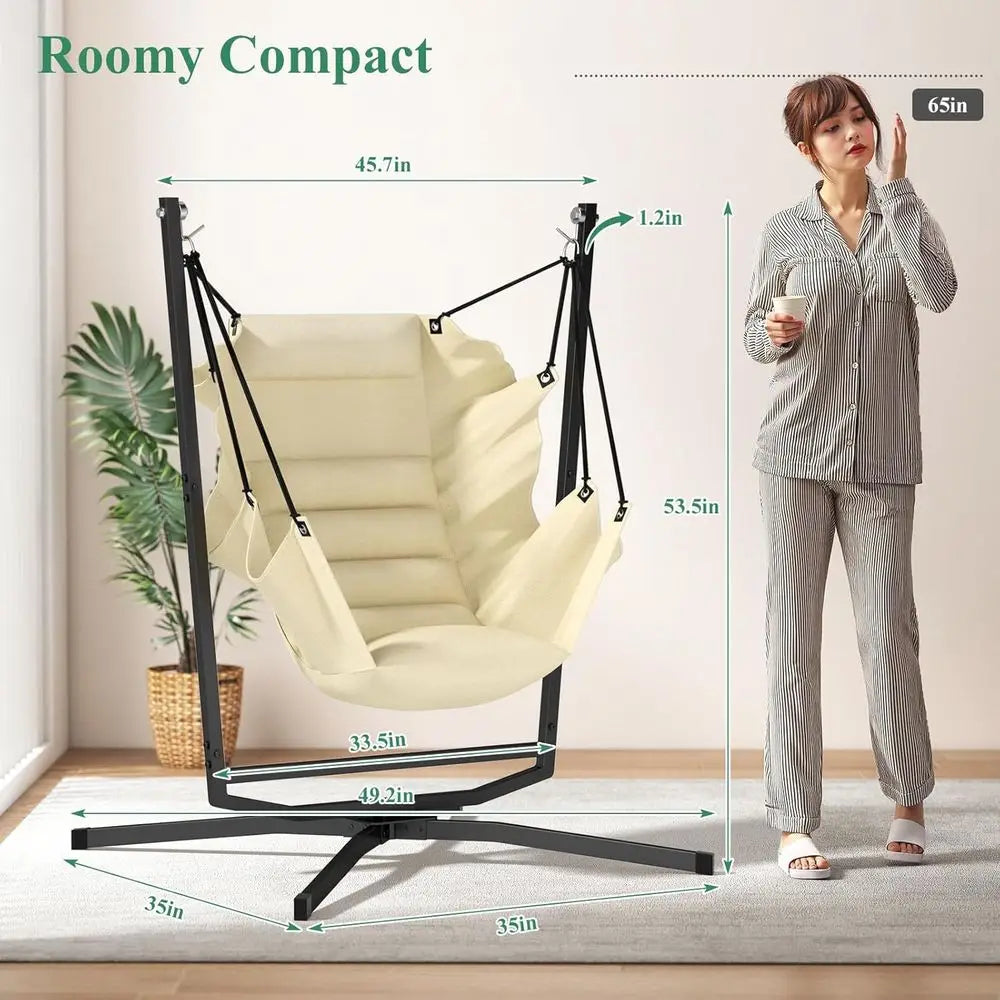 The size and capacity vary slightly by model, but most indoor hanging egg chairs support approximately 250–350 lbs and offer generous seating space for relaxing, reading, or napping.