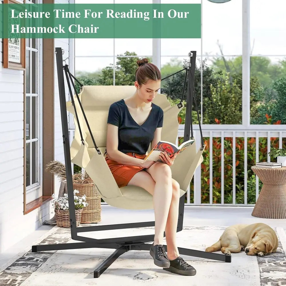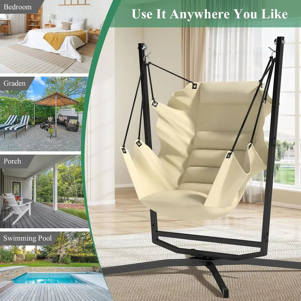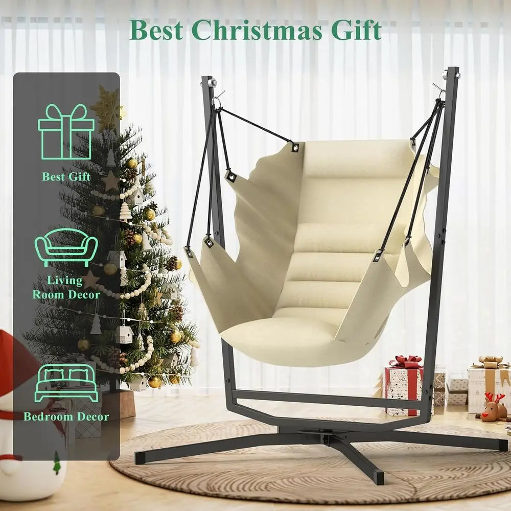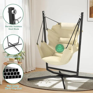Swivel Hammock Swing Chair with Stand & Cushions